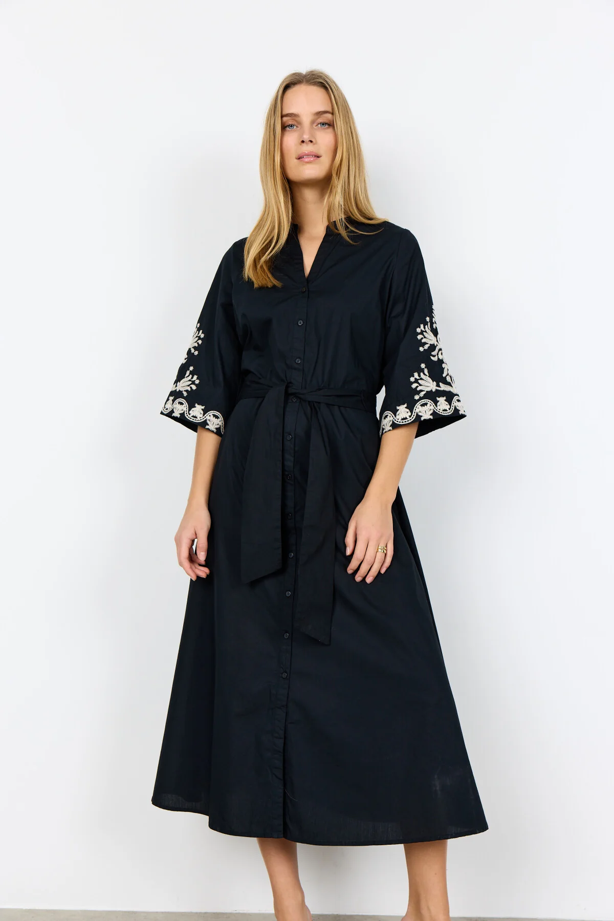 El vestido SC-MILLY 14 está confeccionado en 100 % algodón orgánico. Este elegante vestido luce un delicado bordado en las mangas anchas, botones en la parte delantera y un favorecedor lazo en la cintura, con un largo midi que le aporta sofisticación. CombÃnalo con tus accesorios favoritos para un look único y con estilo.– 100% algodón orgánico