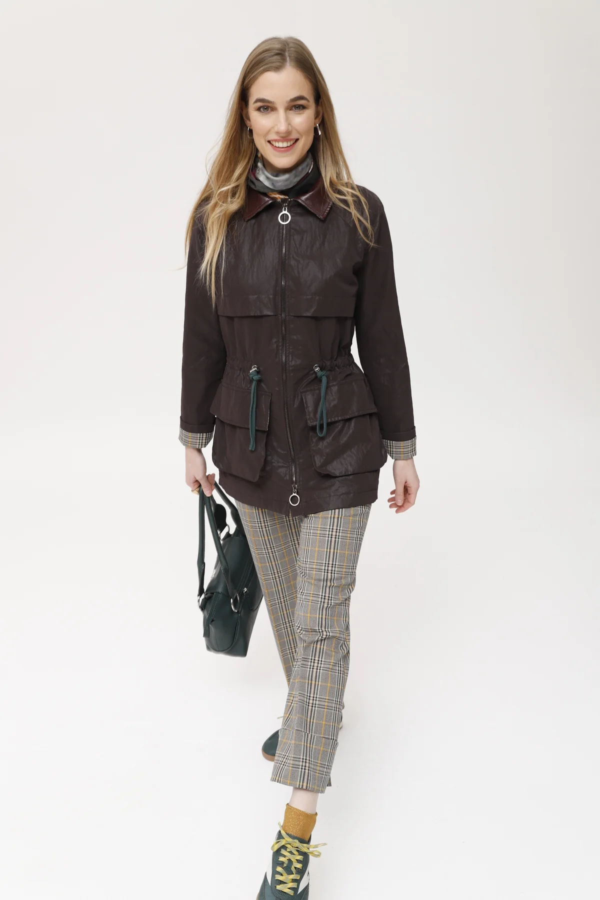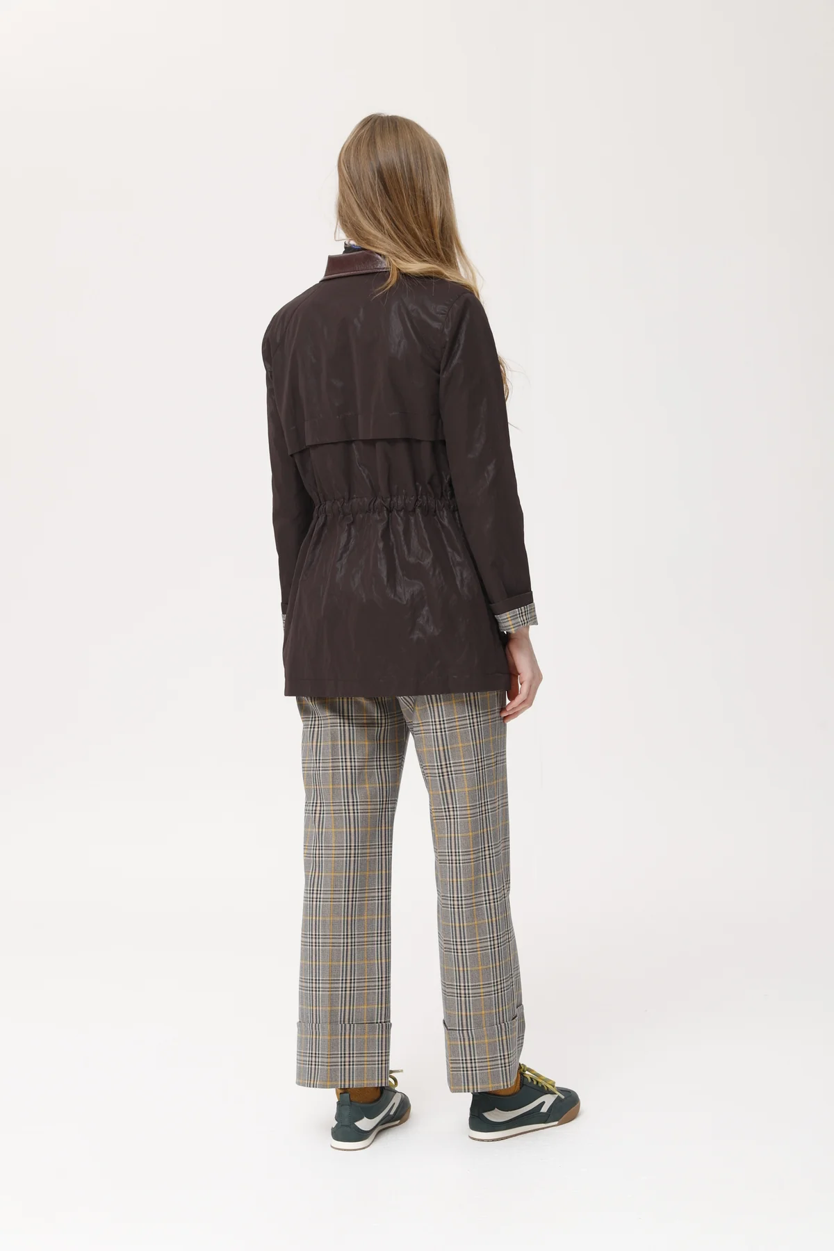 • ABRIGO CHAQUETON EN TEJIDO TECNICO WATERPROOF CON CINTURA AJUSTABLE Y BOLSILLOS PLASTON. ALTURA MODELO 1,75CM