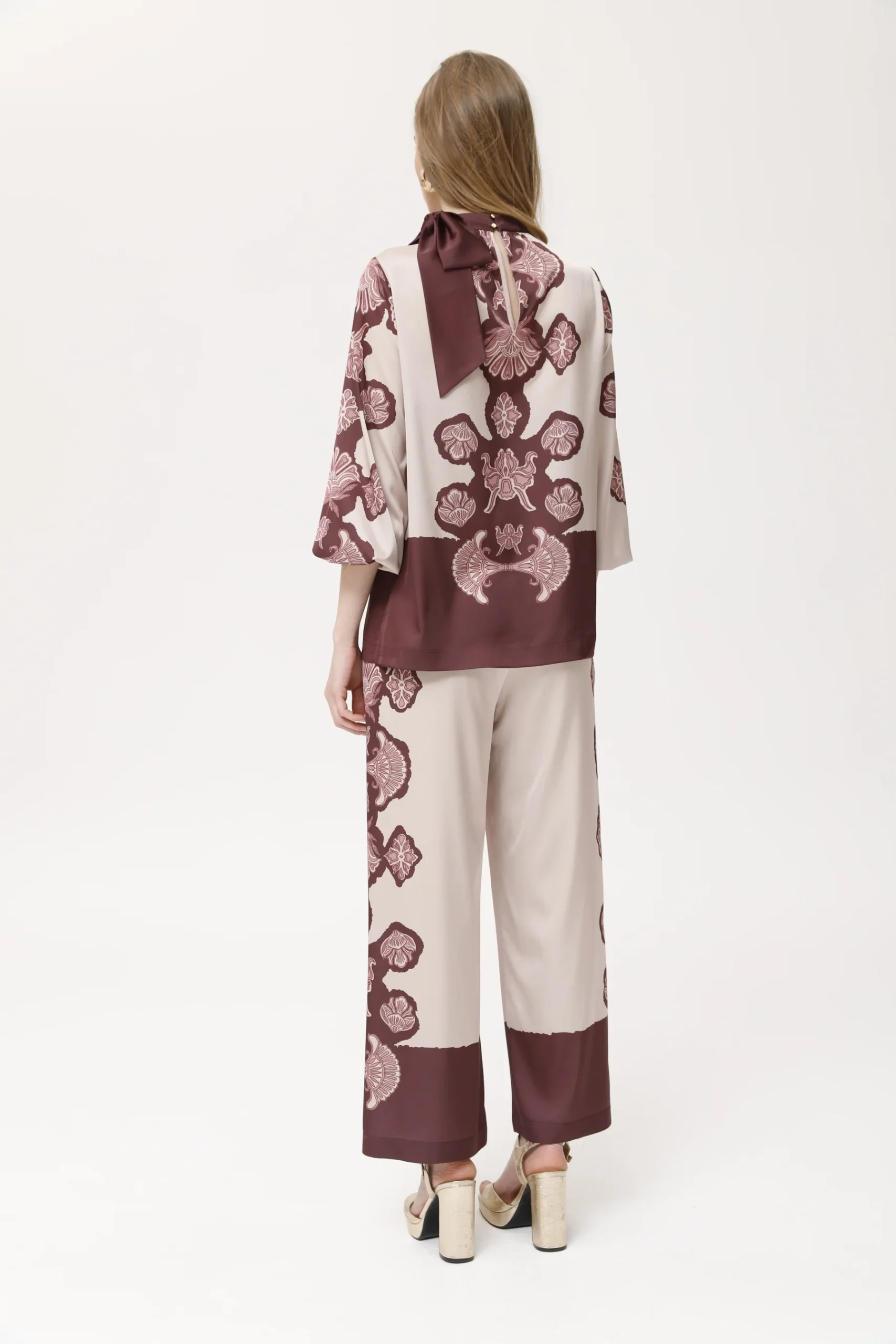 Blusa Manga Larga Con Gran Lazada En El Cuello. Greca Posicionada