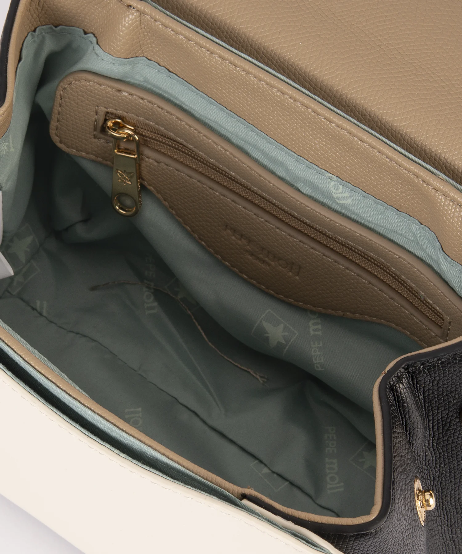 El bolso de mano 261211 de Pepe Moll destaca por su diseño cuidado y su estética moderna, perfecto para quienes buscan un complemento con personalidad.