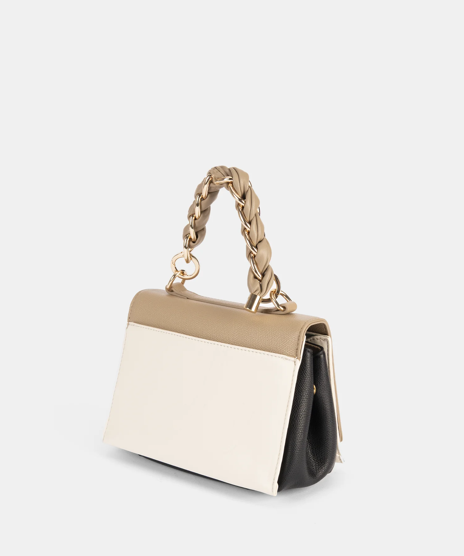 Su silueta estructurada y su asa con detalle trenzado aportan un aire sofisticado y diferente, ideal para elevar tanto looks de dÃa como de noche. Es un bolso pensado para acompañarte en planes especiales, donde cada detalle cuenta y marca la diferencia.