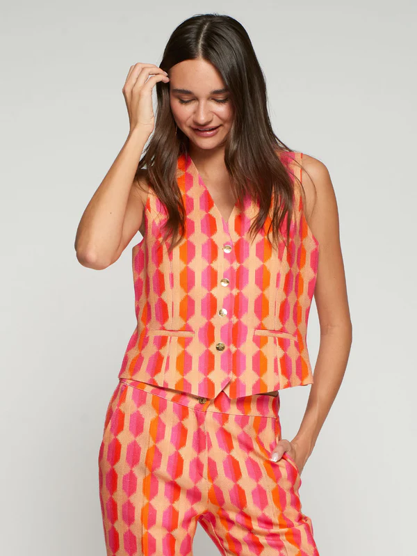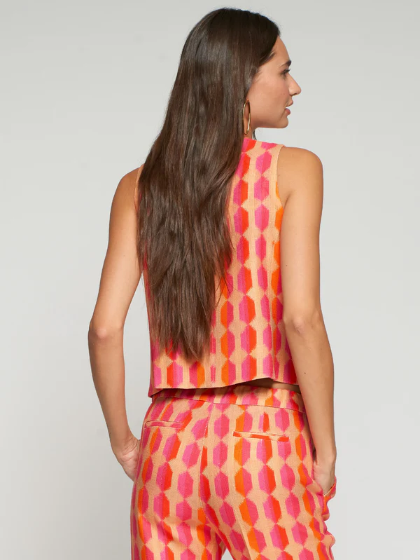 Chaleco estampado geométrico rosa y naranja VILAGALLO
