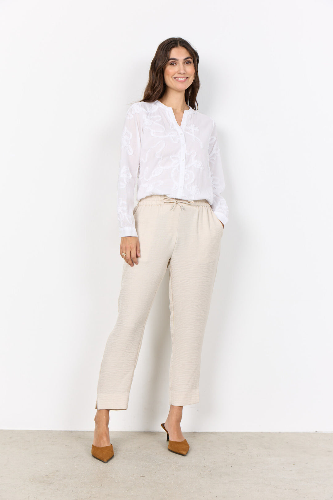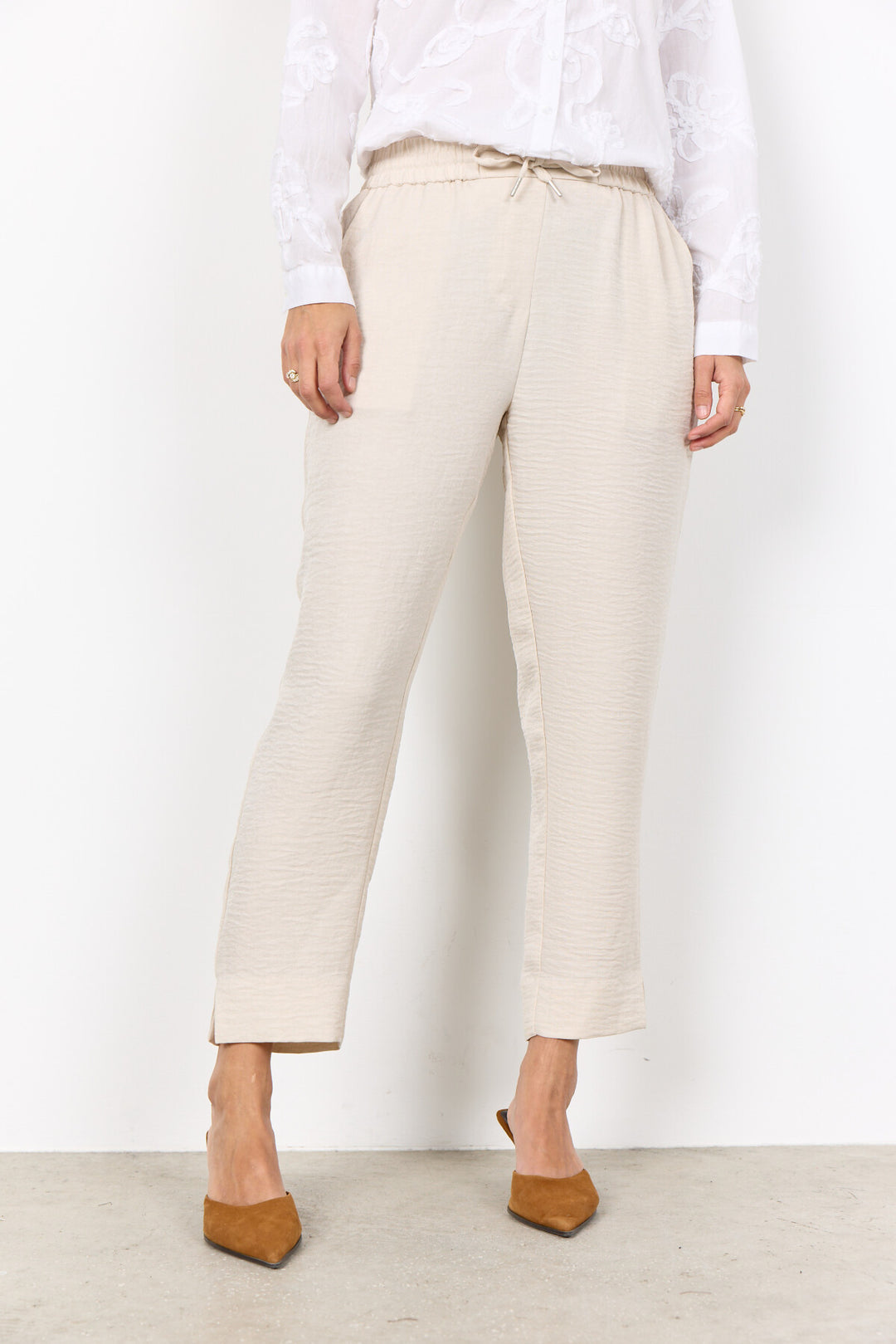 - Los pantalones SC-CHARISSA 3-C están confeccionados con poliéster 100% reciclado. Estos pantalones largos cuentan con cintura elástica y tejido texturizado. Combínalos con una blusa elegante o una camiseta informal para un look sofisticado.