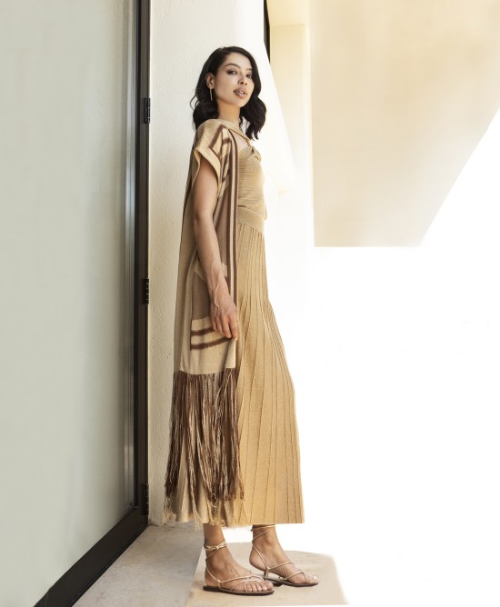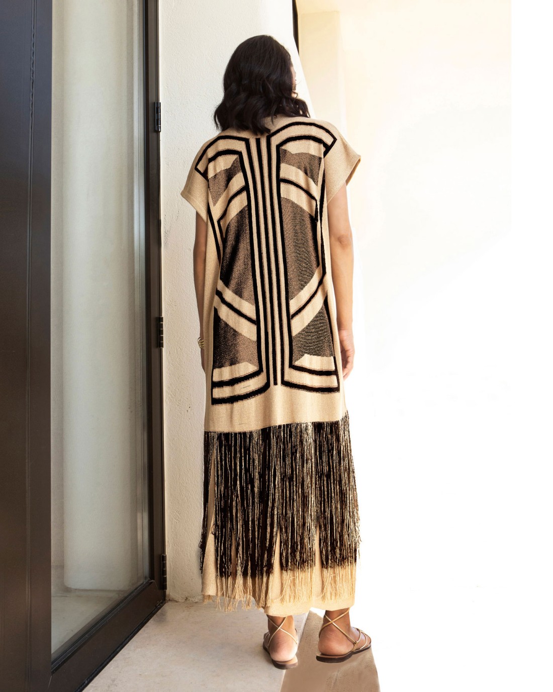 Kimono bicolor de lúrex y lyocell con flecos AGGEL