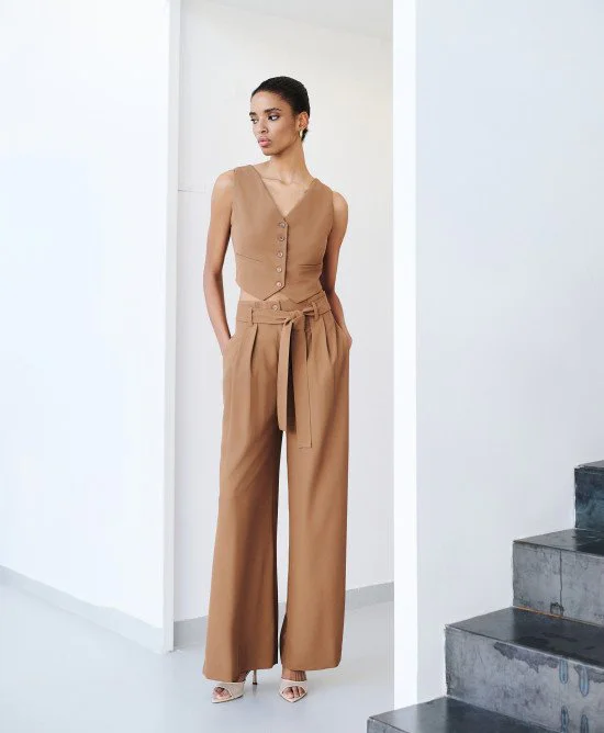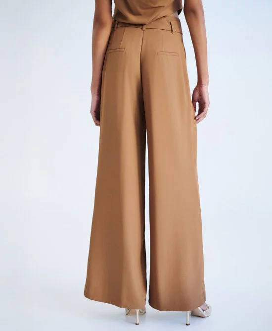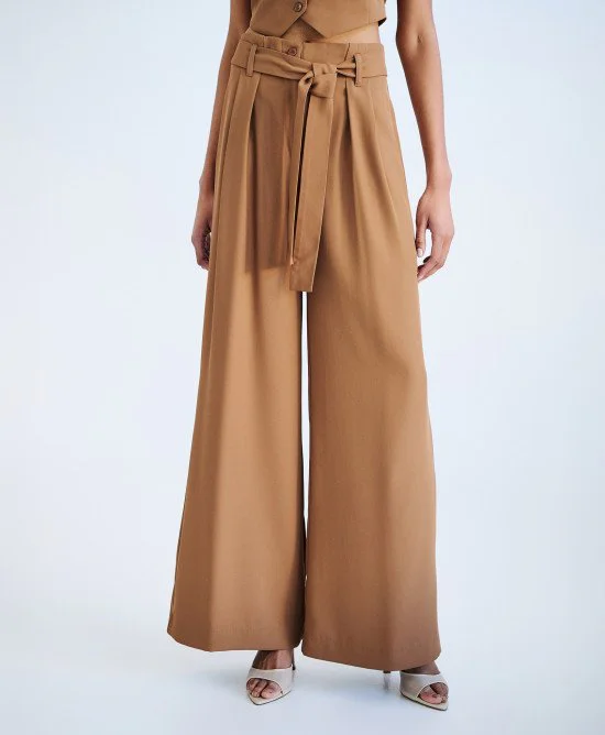 Pantalón ancho con pinzas y cinturón camel ACCES