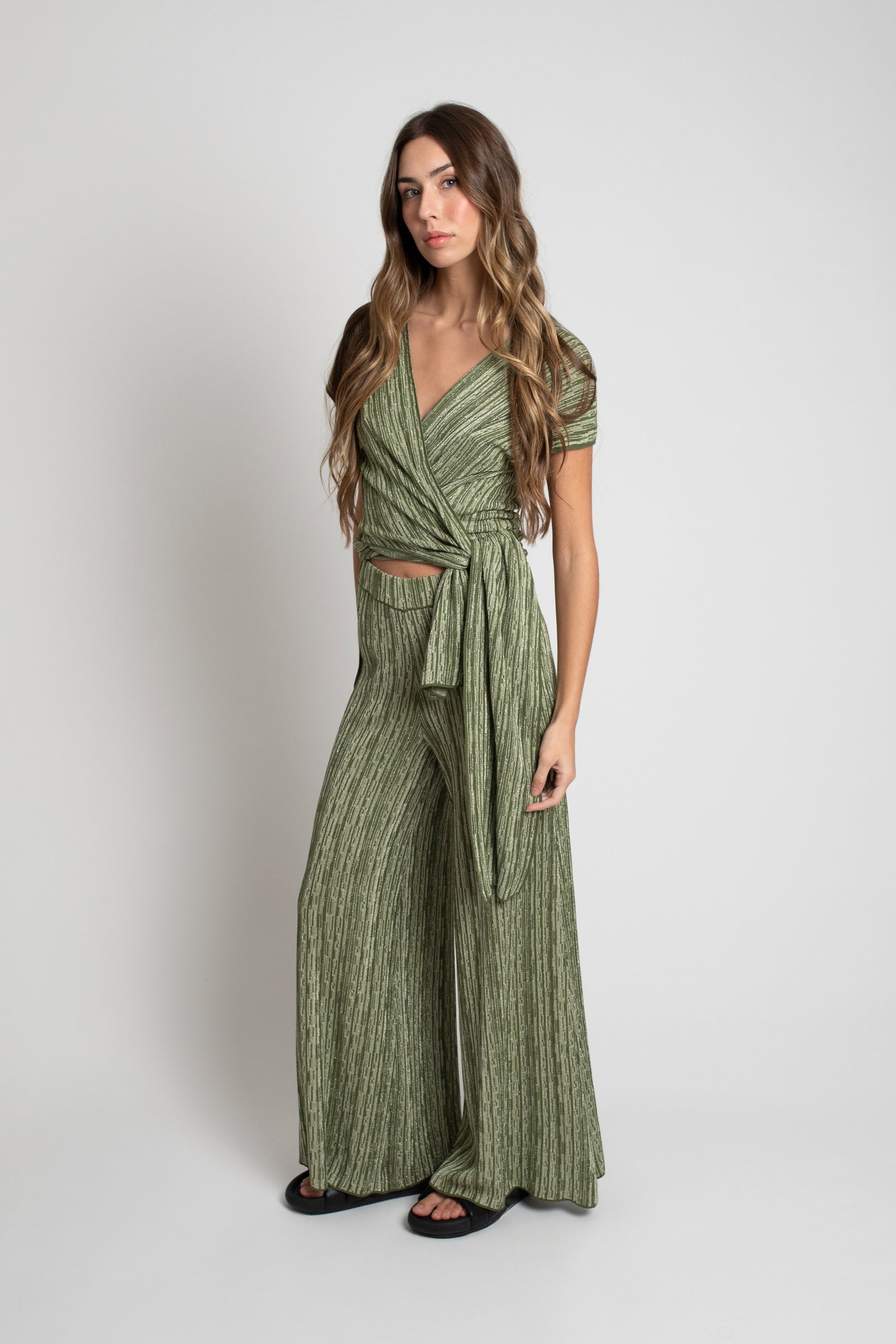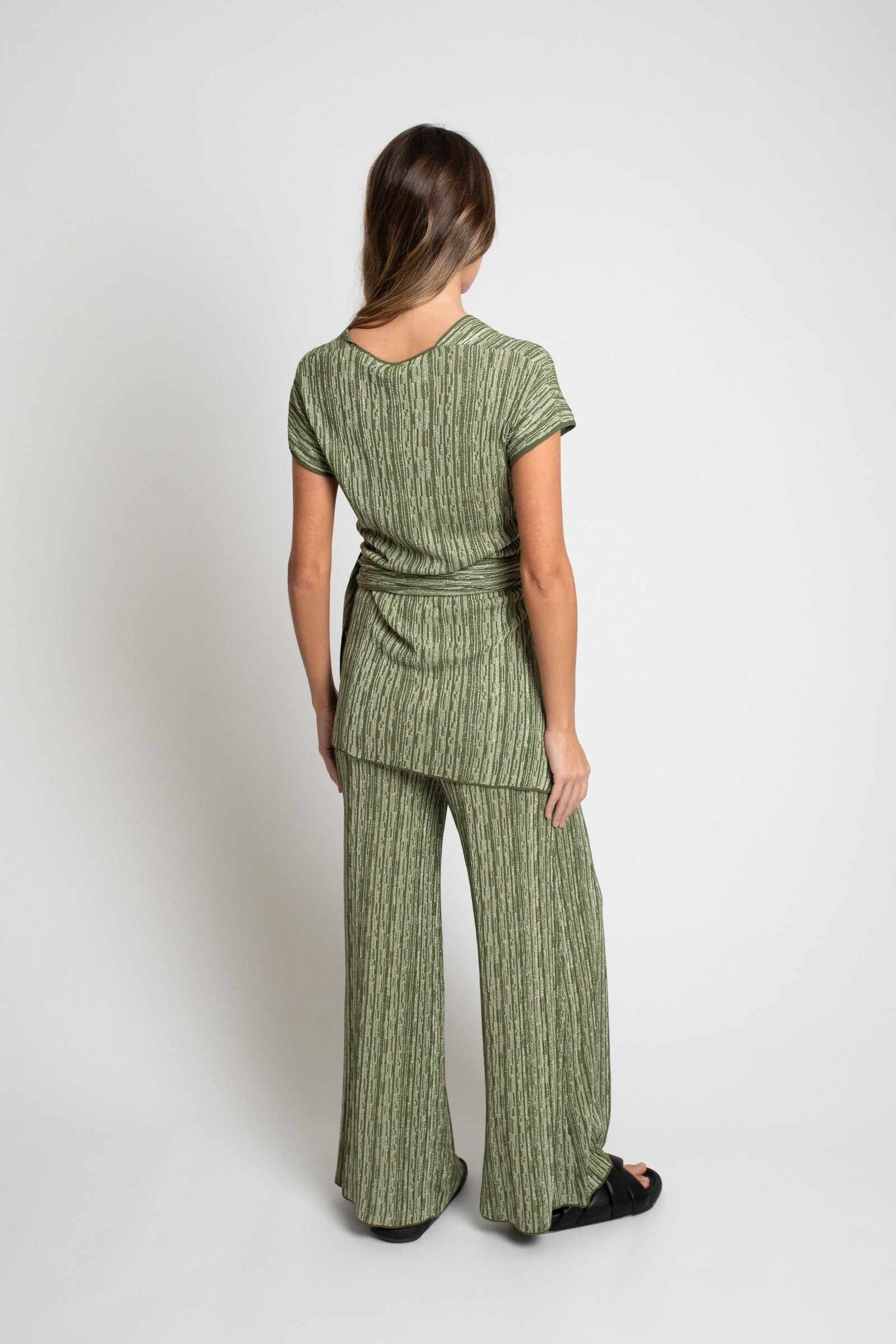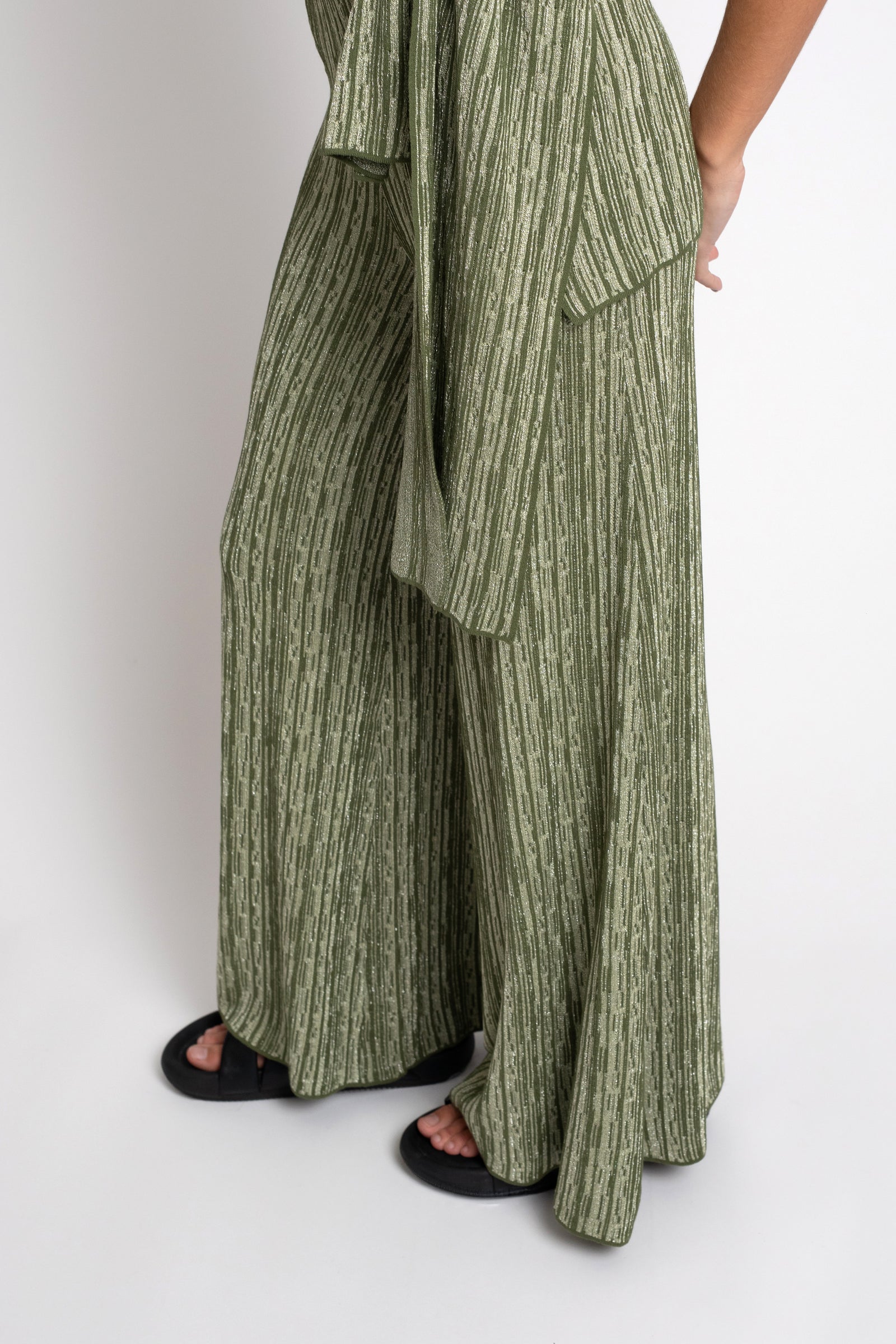 Su corte de pierna ancha estiliza la figura y favorece el movimiento natural. La estructura del punto proporciona comodidad y una caída elegante ideal para ocasiones tanto formales como relajadas.